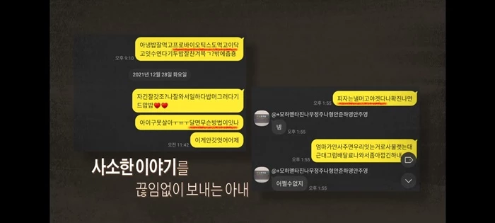 별다른 내용은 없다. 아내가 "몇 시간씩 연락 안 되는 게 이해가 안 된다"라고 하자