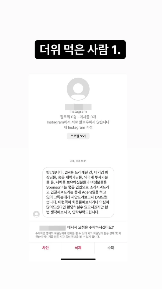 스폰서 측은 “원하시면 금액은 더 드릴 수 있다고 하시네요. 이런 기회 없으니 놓치면 나중에 후회 합니다.