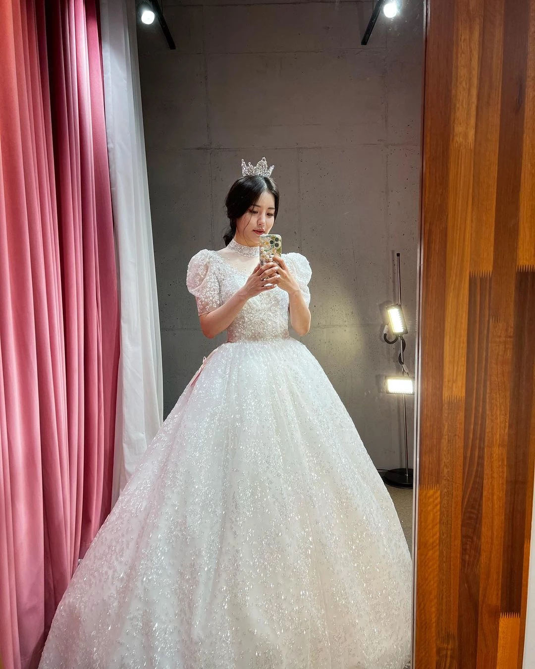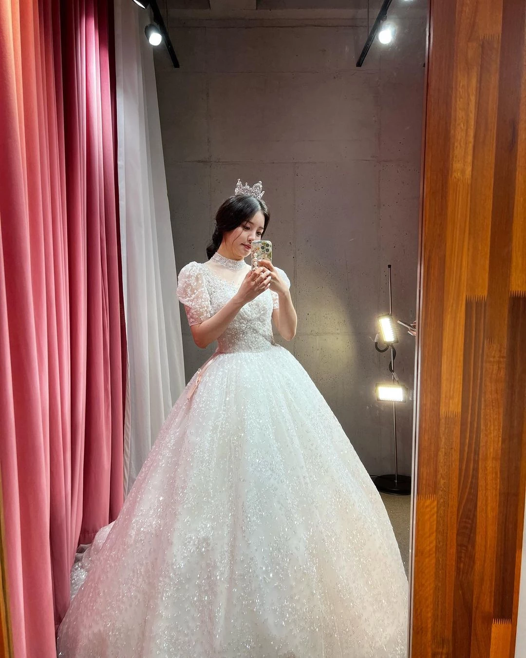 티아라를 쓴 그의 청순하면서도 사랑스러운 분위기가 시선을 사로잡는다.