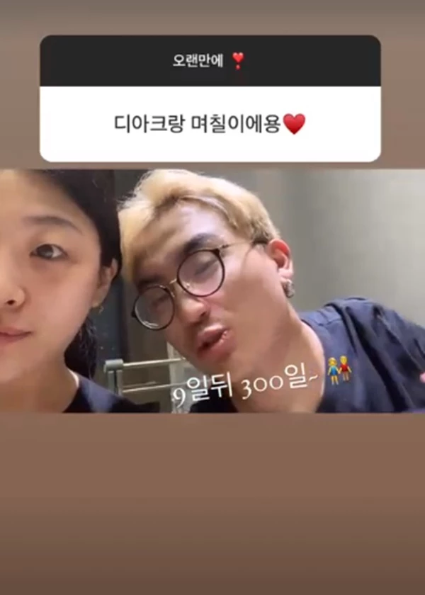 이승아는 SNS에 디아크와 함께하는 일상과 뽀뽀하는 등 거침없는 스킨십 사진을 공유해 이목을 집중시켰다.