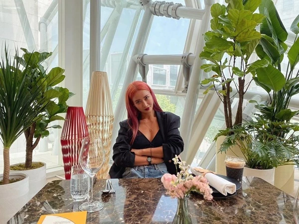 또 황보는 분홍색 헤어스타일과 또렷한 이목구비로 동안 미모를 자랑해 눈길을 붙잡았다.