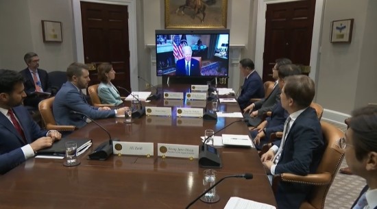 코로나19 확진으로 바이든 대통령은 화상으로 참석한 가운데 지나 레이몬도 상무장관과 브라이언 디스 백악관 국가경제위원장이 현장에서 간담회를 이끌었다.