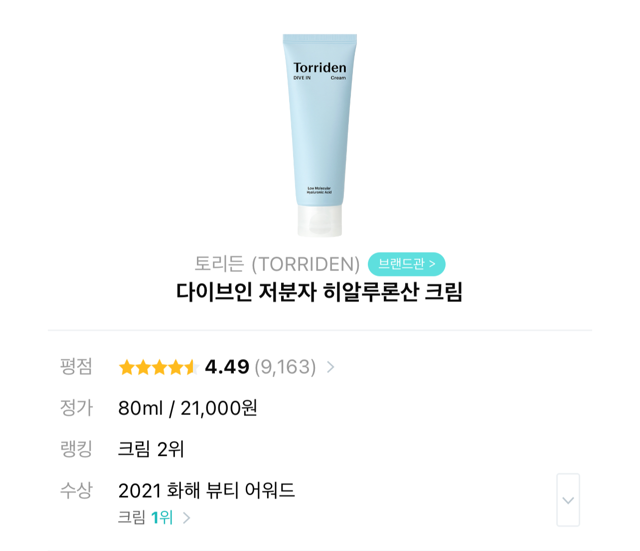 9. 다이브인 저분자 히알루론산 크림