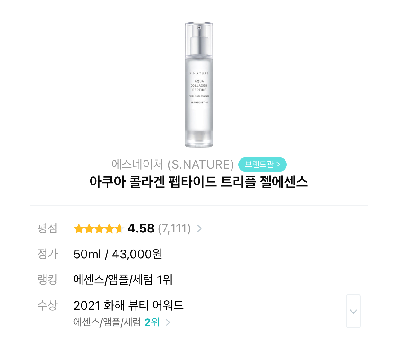 3. 아쿠아 콜라겐 펩타이트 트리플 젤에센스