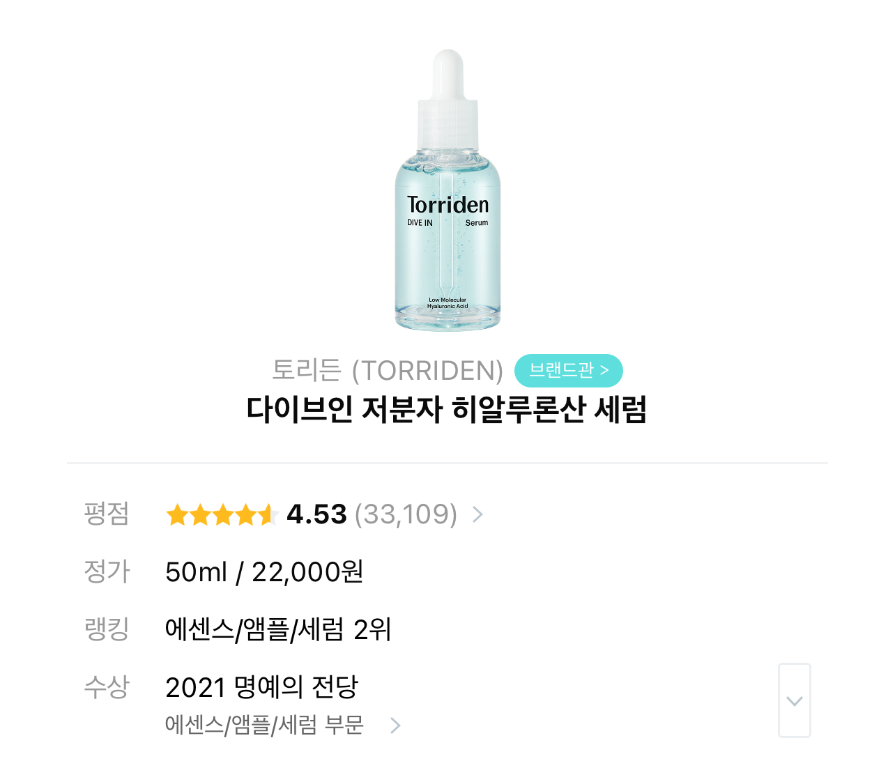 정가(용량) : 50ml / 22,000원