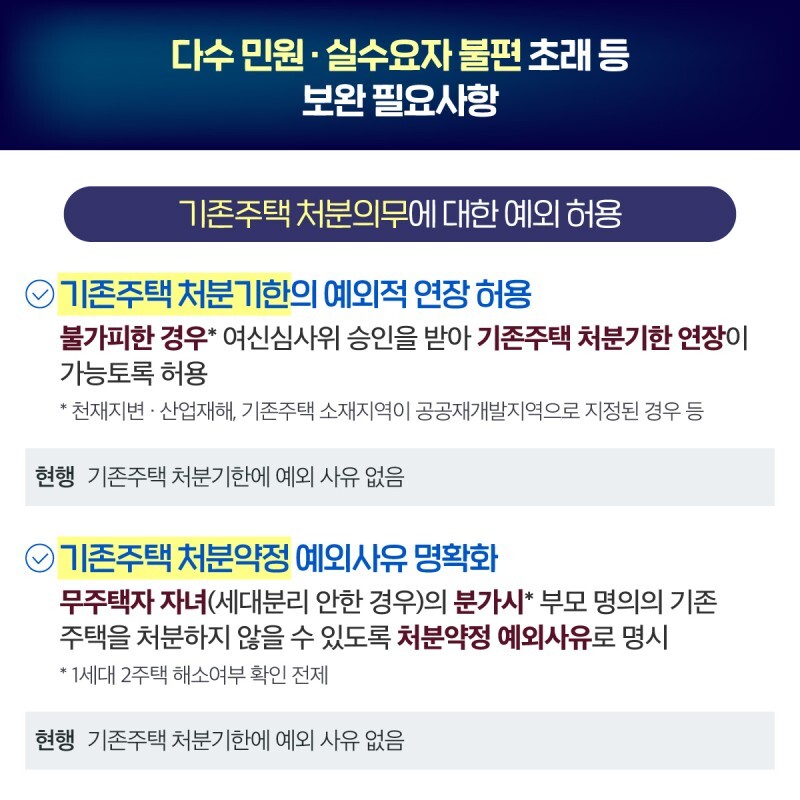 기존주택 처분기한은 6개월 → 2년으로 완화하고, 신규주택 전입 의무를 폐지