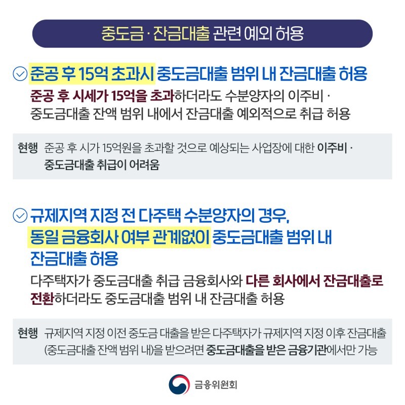 ✅ 준공 후 15억 초과시 중도금대출 범위 내 잔금대출 허용