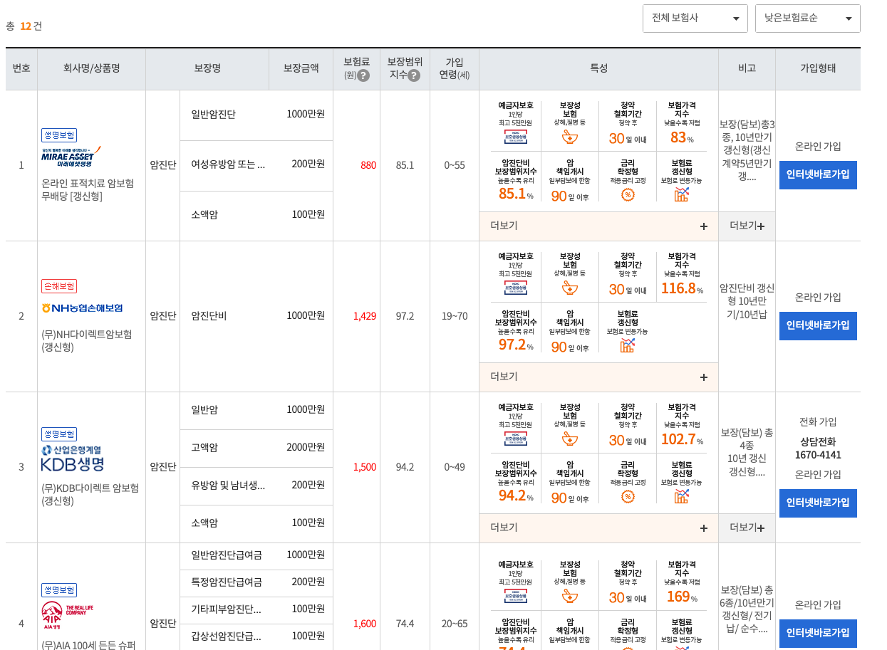 이런 부분을 편하게 확인할 수 있도록 해주는 암보험 비교견적 내주는 사이트가 상당히 많이 있습니다.