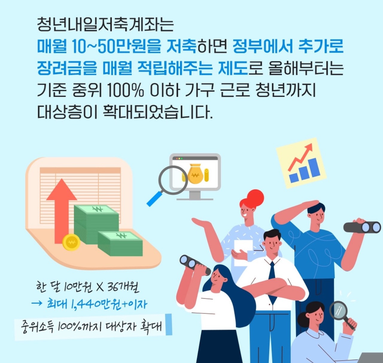 청년내일저축계좌는 올해부터 가입 대상을 일정 기준을 충족하는 저소득 청년으로 대폭 확대 되며