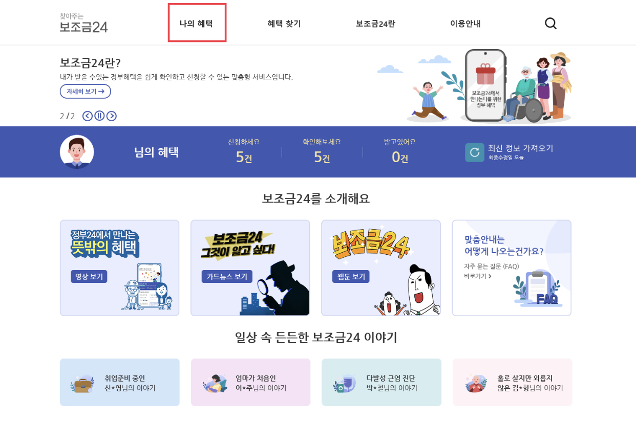 그동안 정부 기관에서 지급하는 각종 보조금을 확인하기 위해서는