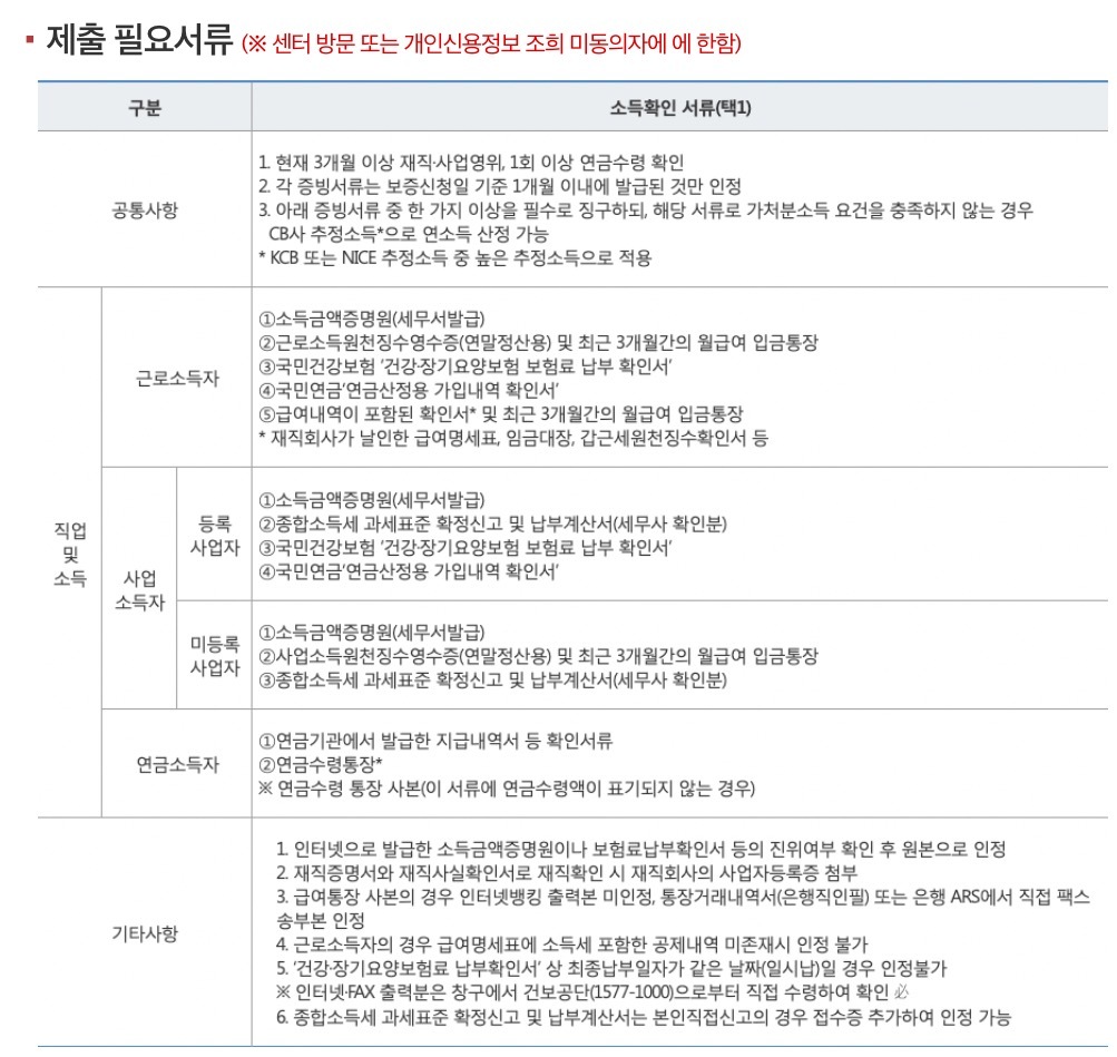 이용자가 제출해야 하는 소득 증빙서류 없음