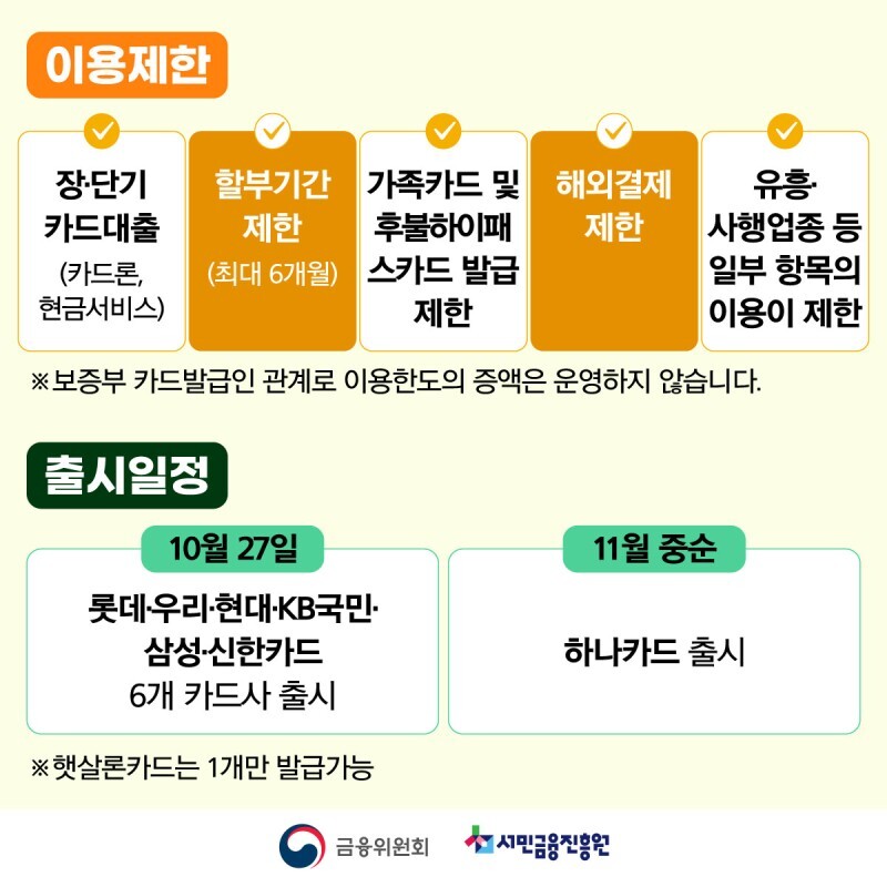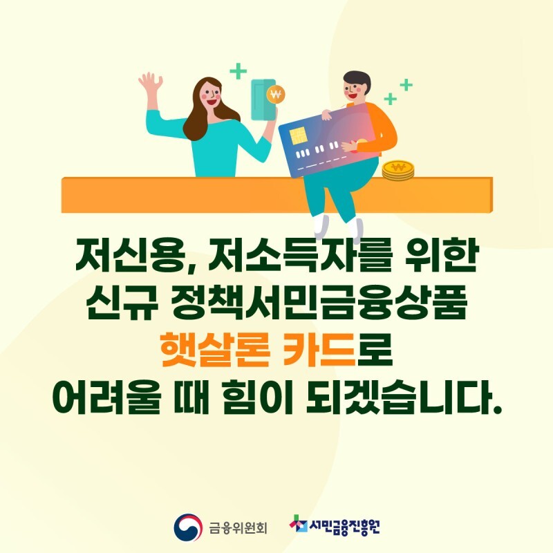 햇살론 등 기존 정책서민금융상품과 마찬가지로, 신용카드를 통해 매달 일정규모의 신용을 제공합니다.