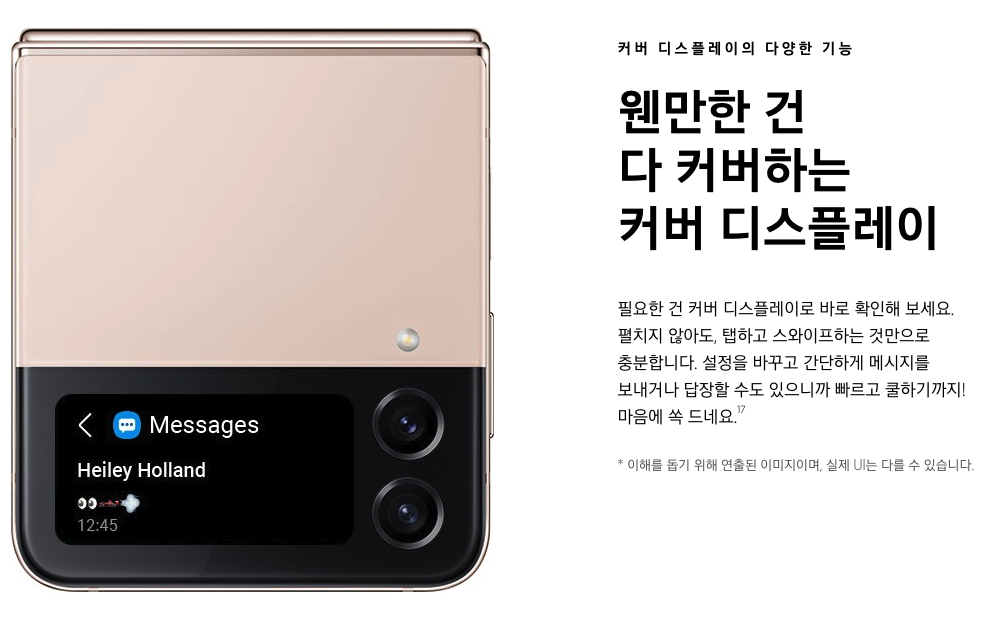 폰을 열지 않고 커버 디스플레이에서 바로 전화 걸기와 문자 답장도 가능하고