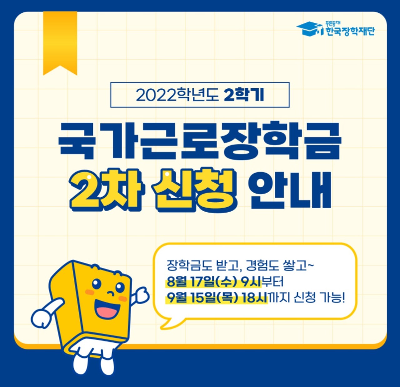2022년 2학기 국가근로장학금 2차 신청 기간 안내