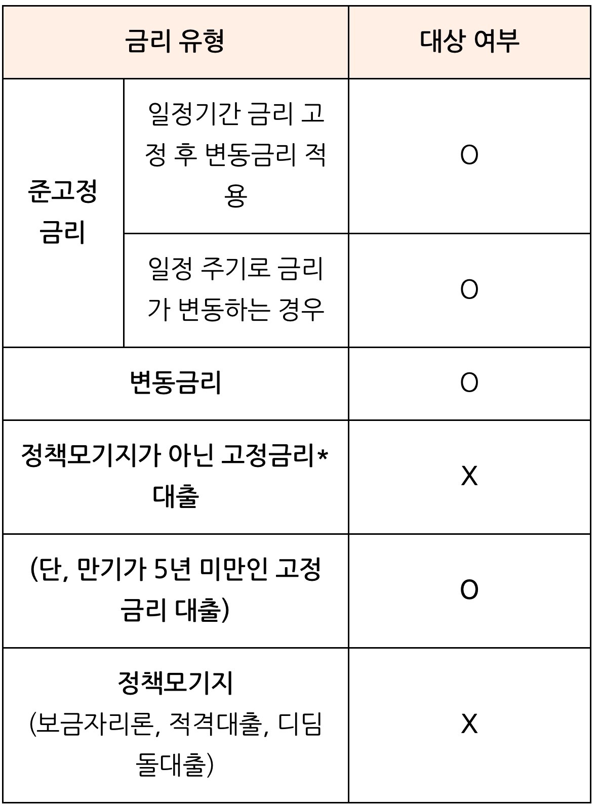 2022년 8월 17일 전에 실행된 변동금리 및 준고정금리 주택담보대출부터 가능합니다.