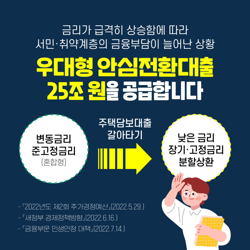 변동금리·준고정금리(혼합형) 주택담보대출을 저금리의 장기·고정금리·분할상환 상품으로 갈아탈 수 있는