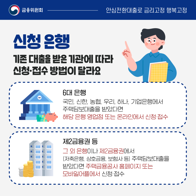 기존 대출을 받은 기관에 따라 신청·접수 방법이 달라요