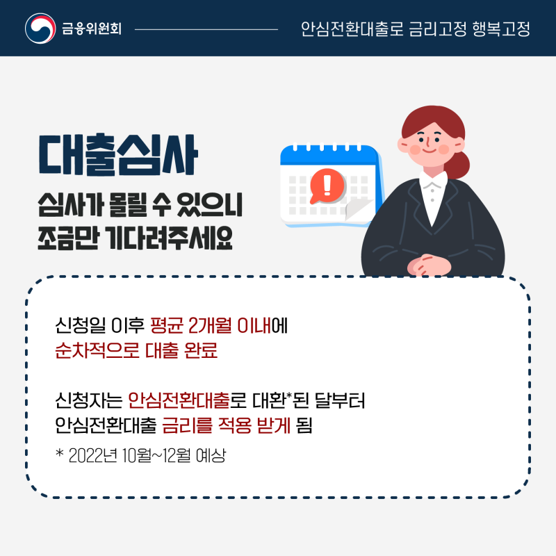 신청일 이후 평균 2개월 이내에 순차적으로 대출 완료