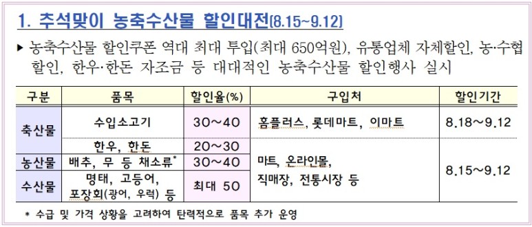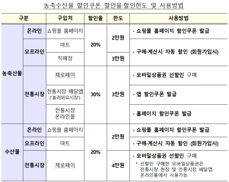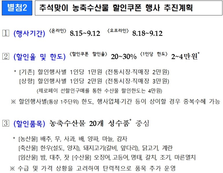 - 농,축,수산물 할인쿠폰 역대 최대 투입: 20~30% 할인