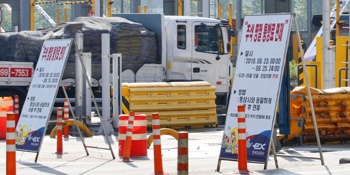 통행료 면제 기간은 9월 9일 ~ 9월 12일 추석 연휴 나흘간이며