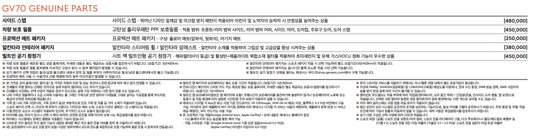GV70의 주요 장점 중 하나는 가솔린과 디젤 엔진 모두를 제공하는 파워트레인의 다양성입니다. 차량은 넓은 내부 공간과 대형 인포테인먼트 디스플레이, 고급 내비게이션 시스템 등 다양한 고급 기술 기능을 자랑합니다.