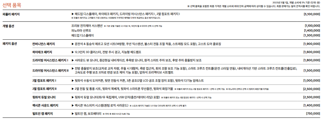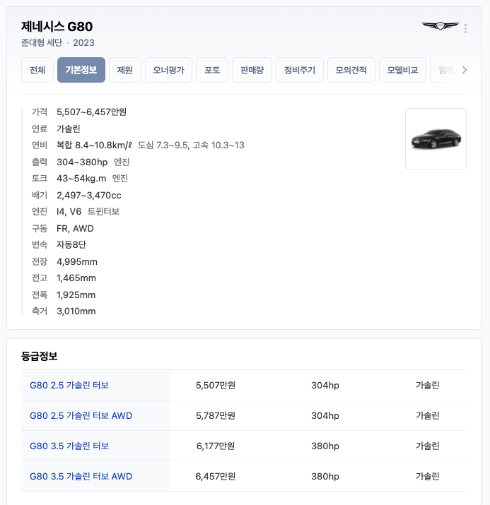 2023 제네시스 G80의 옵션과 가격