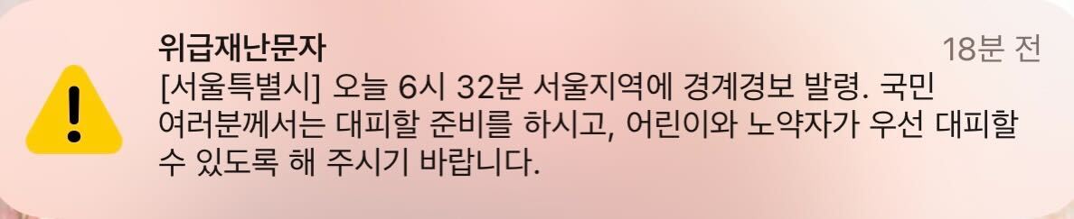 서울특별시에 오전 6시 32분 경계경보가 발령되었습니다.