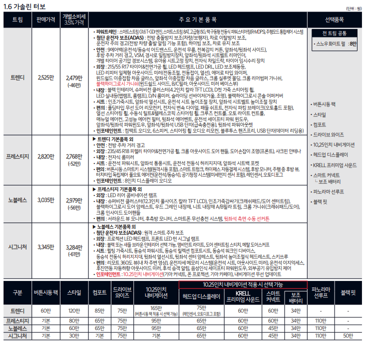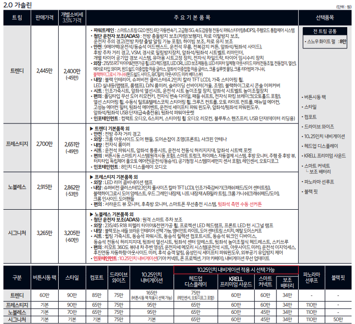 4. K5 가격 및 옵션