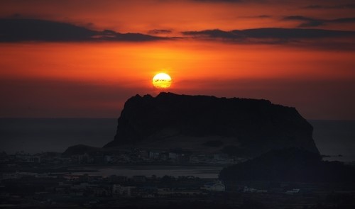 제주도의 랜드마크인 성산일출봉은 세계적으로 유명한 해돋이 명소입니다.