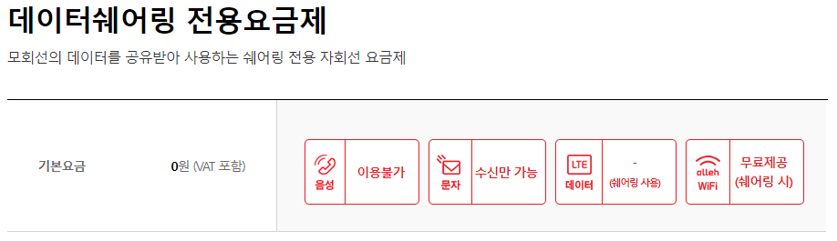 기존 3대 통신사와 동일하게 1회선에 한해서 월 0원으로 이용이 가능합니다.