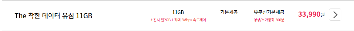 통화 기본제공 / 문자 기본제공 / 데이터 11GB + 매일2GB + 3Mbps속도 무제한 으로 가장 기본적인