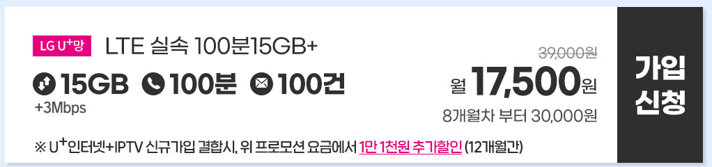 그리고 U+인터넷과 IPTV 결합이 가능하다고 하니 결합생각이 있으신 분들은 좋은 요금제 같습니다.