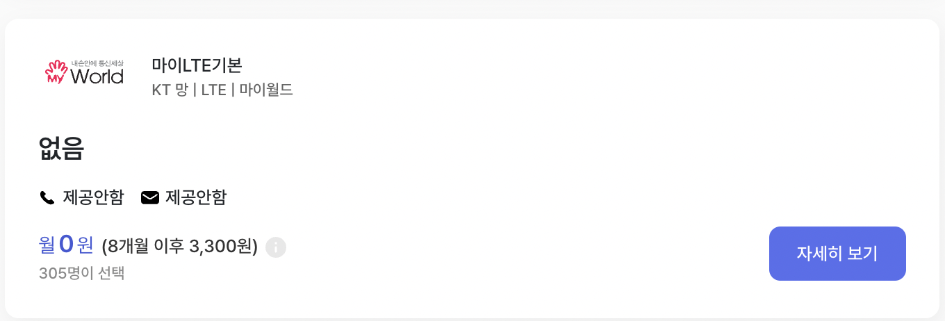 이 요금제의 기본제공량은 통화 0분 / 문자 0건 / 데이터 0GB