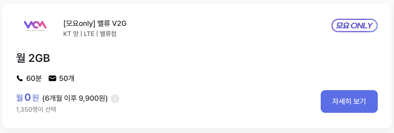 이 요금제의 기본제공량은 통화 60분 / 문자 50건 / 데이터 2GB