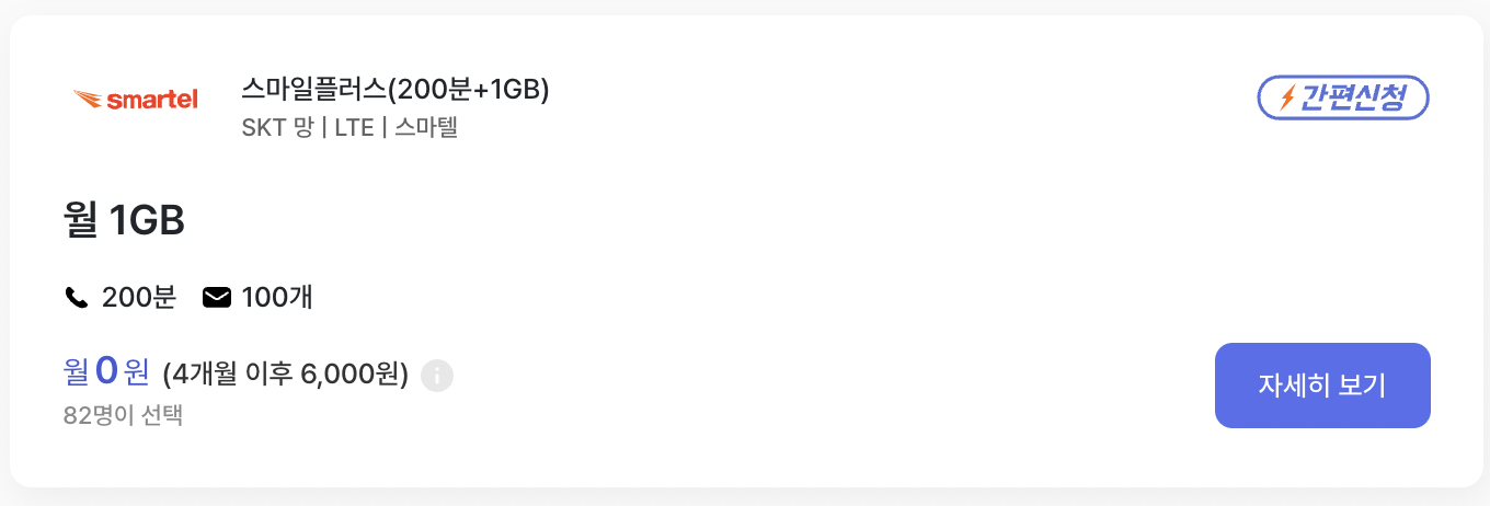 3. 스마일플러스(200분+1GB)