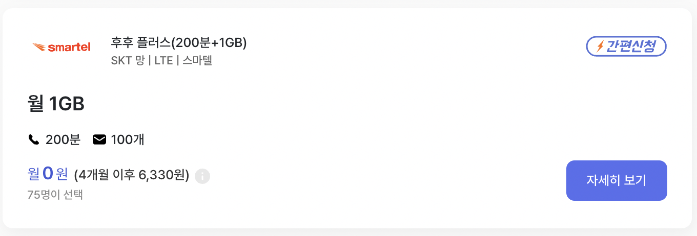 1. 후후플러스(200분+1GB)